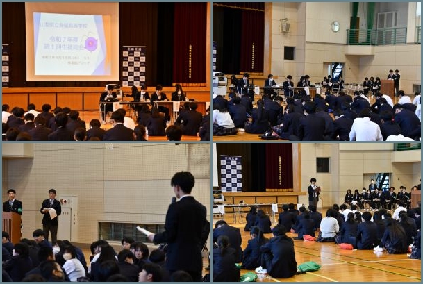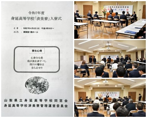山梨県立身延高等学校 > 学校行事 > 身延高校_4月 2025年10月2日カテゴリー: 学校行事 身延高校_4月 4月8日 新任式・前期始業式 4月9日 入学式/済美寮入寮式 4月10日~15日 <キャリアウイーク> 4月10日対面式 校歌・応援歌指導 制服セミナー 部活動オリエンテーション 進路ガイダンス 小論文講座など 4月30日 第1回生徒総会
