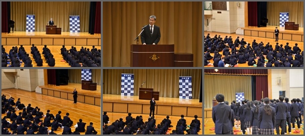身延高校は前期、後期の2学期制です。10月1日は後期始業式を行い、丸山校長先生より全員が夢の発見・育み・実現に向けて、今以上に前向きな取り組みを期待するとのお話がありました。続いてカリキュラム部、キャリア教育部、スクールライフ部の先生方のお話、最後に全員で校歌を斉唱しました。