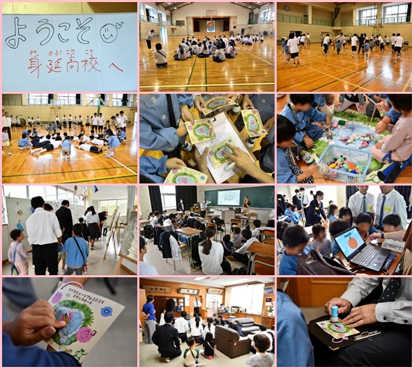 10月14日 身延町の大野山保育園児が身延高校に来校し、3年次RJの体育と2年次英語の授業に参加してくれました。生徒の案内で校内を見学したり、多目的ホールに出現した「かのうせいじんのいけ」では、生徒制作の可能星人マスコット釣りをしたり、スタンプラリーをしていました。楽しんでもらえたら嬉しいです。(体育授業の様子はNNS「ジモラブ」で放送される予定です)