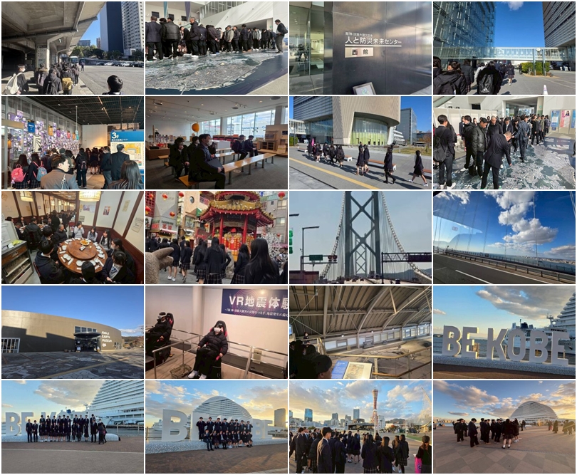 12月9日〜12日 、校長先生団長のもと2年次生は、関西方面へ修学旅行に出かけました。1日目は静岡から新幹線で神戸に向かいました。1日目は、人と防災未来センター、北淡震災記念公園、神戸港震災メモリアルパークで震災学習を行い、全員が無事に宿舎に到着し、元気に夕食をとって各自ゆっくりと部屋で過ごします。