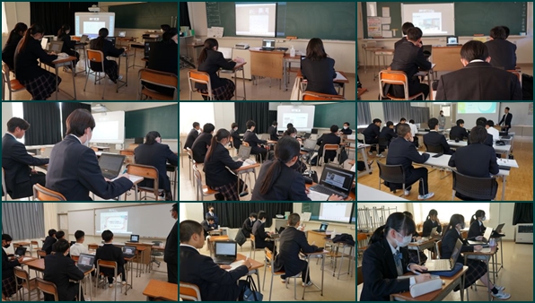 12月10日 6校時 1年次生は、2回目となる【学生図鑑のオープンキャンパス】をオンラインで行いました。実際に学生が訪ねてくれた学校もありました。その学生さんが本校卒業生だったこともあり、より身近に感じられたようです。今回は8講座から2つの講座を選んで参加していました。
