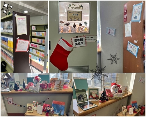 ハロウィン🎃が過ぎた後…図書館内はクリスマス仕様になっていました^^