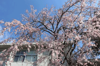 山梨県立身延高等学校 > 学校生活 > 今日の桜 2026年3月18日カテゴリー: 学校生活 今日の桜 身延町といえば…桜🌸を思い浮かべることと思います。身延高校においても一足早く開花する枝垂れ桜が綺麗に咲き始めました♪ 蒲公英も…