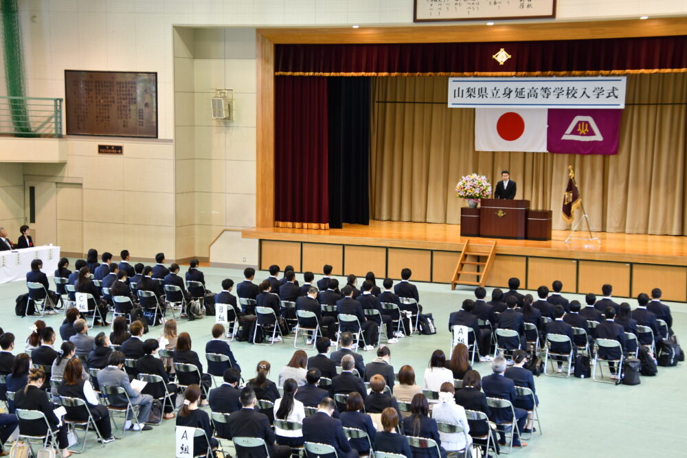山梨県立身延高等学校 > 学校行事 > 令和8年度 入学式 2026年4月9日カテゴリー: 学校行事 令和8年度 入学式 4月9日(木)、令和8年度山梨県立身延高等学校入学式を、本校体育館にて挙行しました。 春の穏やかな陽気の中、保護者の皆様に見守られながら、46名の新入生が本校への入学を許可され、高校生活の第一歩を踏み出しました。 式では、校長より新入生一人一人に向けて、高校生活への期待と励ましの言葉が送られました。続いて、新入生代表から、これから始まる3年間に向けた力強い宣誓があり、新たな学びへの決意を堂々と述べました。 新入生は、やや緊張した面持ちながらも、これから始まる新たな学びへの意欲を感じさせる姿勢で式に臨んでいました。 本校では、生徒一人一人の成長を大切にしながら、家庭や地域と連携した教育活動を進めてまいります。新入生の皆さんが、仲間や支えてくださる方々への感謝の気持ちを胸に、充実した高校生活を送ることを期待しています。