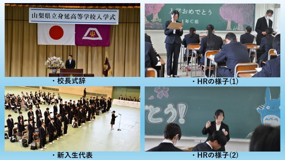 本校では、生徒一人一人の成長を大切にしながら、家庭や地域と連携した教育活動を進めてまいります。新入生の皆さんが、仲間や支えてくださる方々への感謝の気持ちを胸に、充実した高校生活を送ることを期待しています。