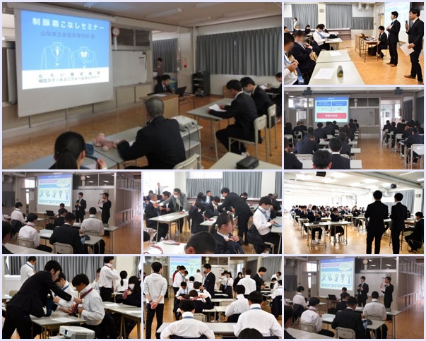 4月13日 ⑥校時は新入生に向けての制服着なしセミナーを開催しました。第一印象が大切であること、制服の手入れ方法など、身延高校の一員として制服をさわやかに着こなし、誇りを持って生活することが夢を叶える第一歩であることなどを話していただきました。本校では、式典の際に全員がネクタイを着用するため、ネクタイの結び方を丁寧に教えていただきました。
