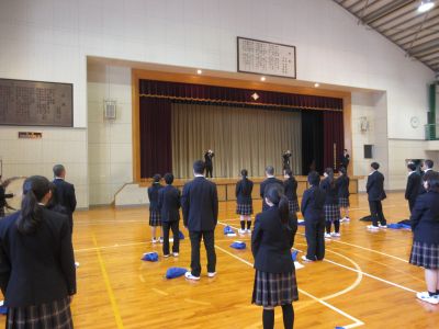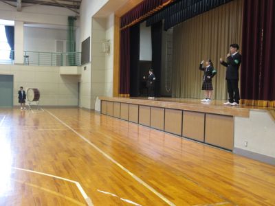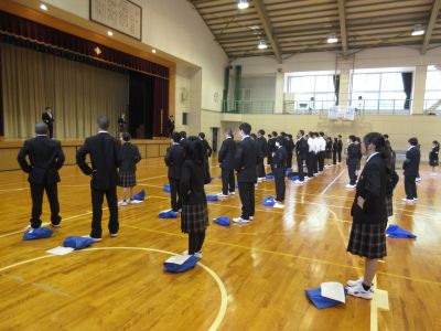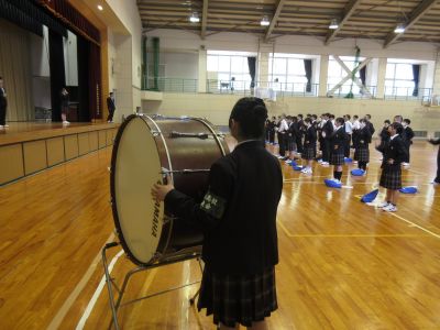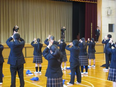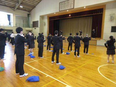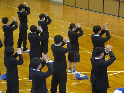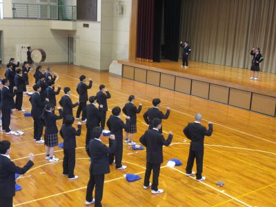 4月14日 キャリアウィーク3日目 1年次生は午前中基礎力診断テストを行い、5校時に生徒会から校歌・応援歌指導を受けました。全校で一丸となって選手を応援するために、応援の形などを練習しました。6校時は個人写真撮影が行われました。