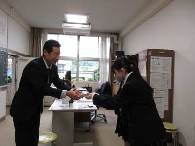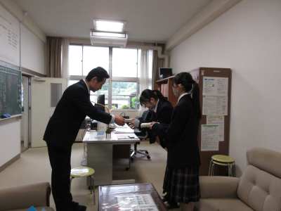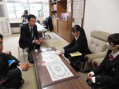 4月30日 高大連携講座メンバー代表が身延小学校を訪問し、昨年度考案した地域に伝わる民話を題材にしたしおりを全校児童分と掲示用のPOPをお渡ししました。高大連携講座の町への報告会の様子や取り組みが、先日新聞に掲載され、記事を目にした校長先生から「内容が気になっていたところにこうして足を運んでいただいて嬉しいです。」とお言葉をいただきました。民話について知ってもらえる機会になればと思います。